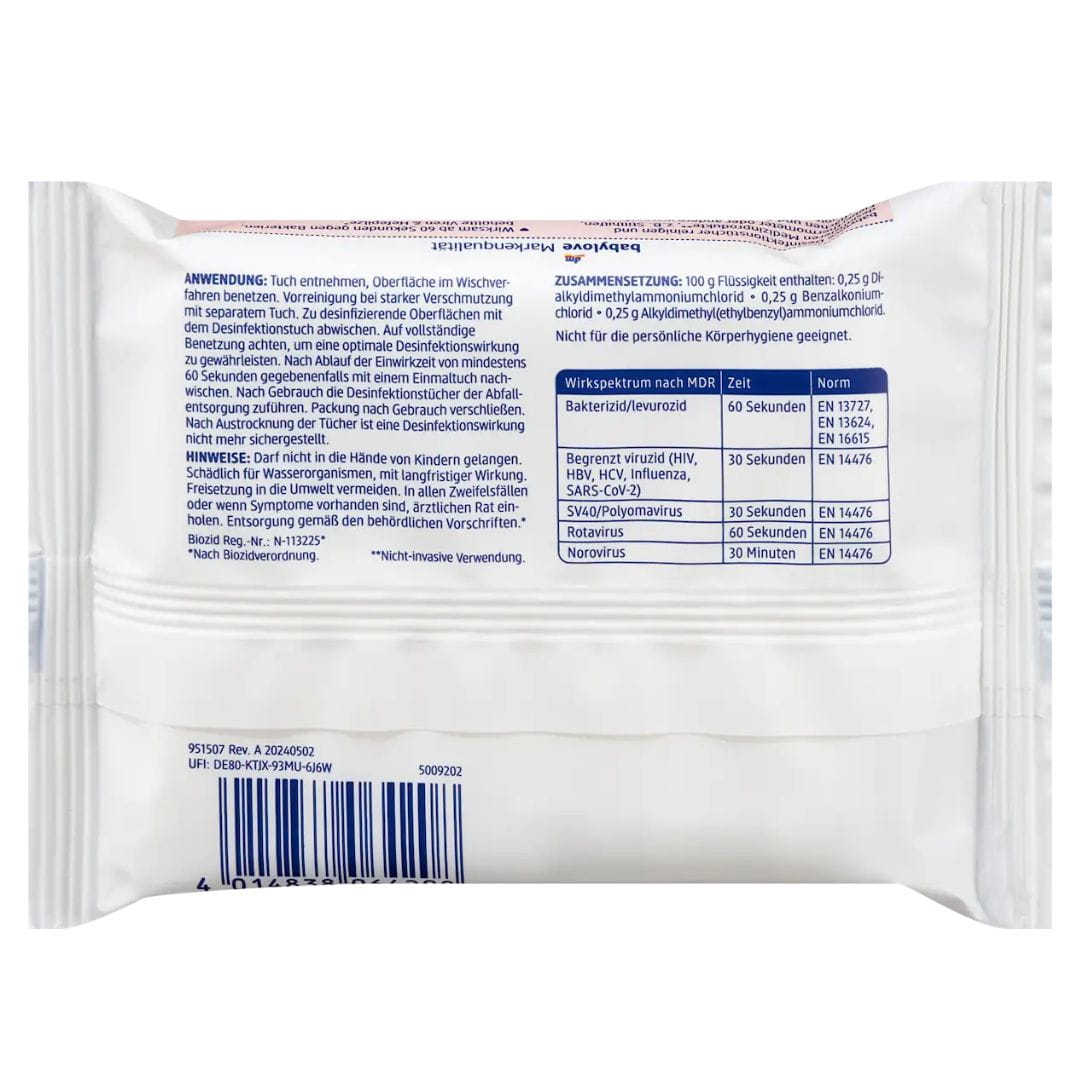 BABYLOVE NAWILŻANE CHUSTECZKI DEZYNFEKUJĄCE NA BAKTERIE WIRUSY GRZYBY